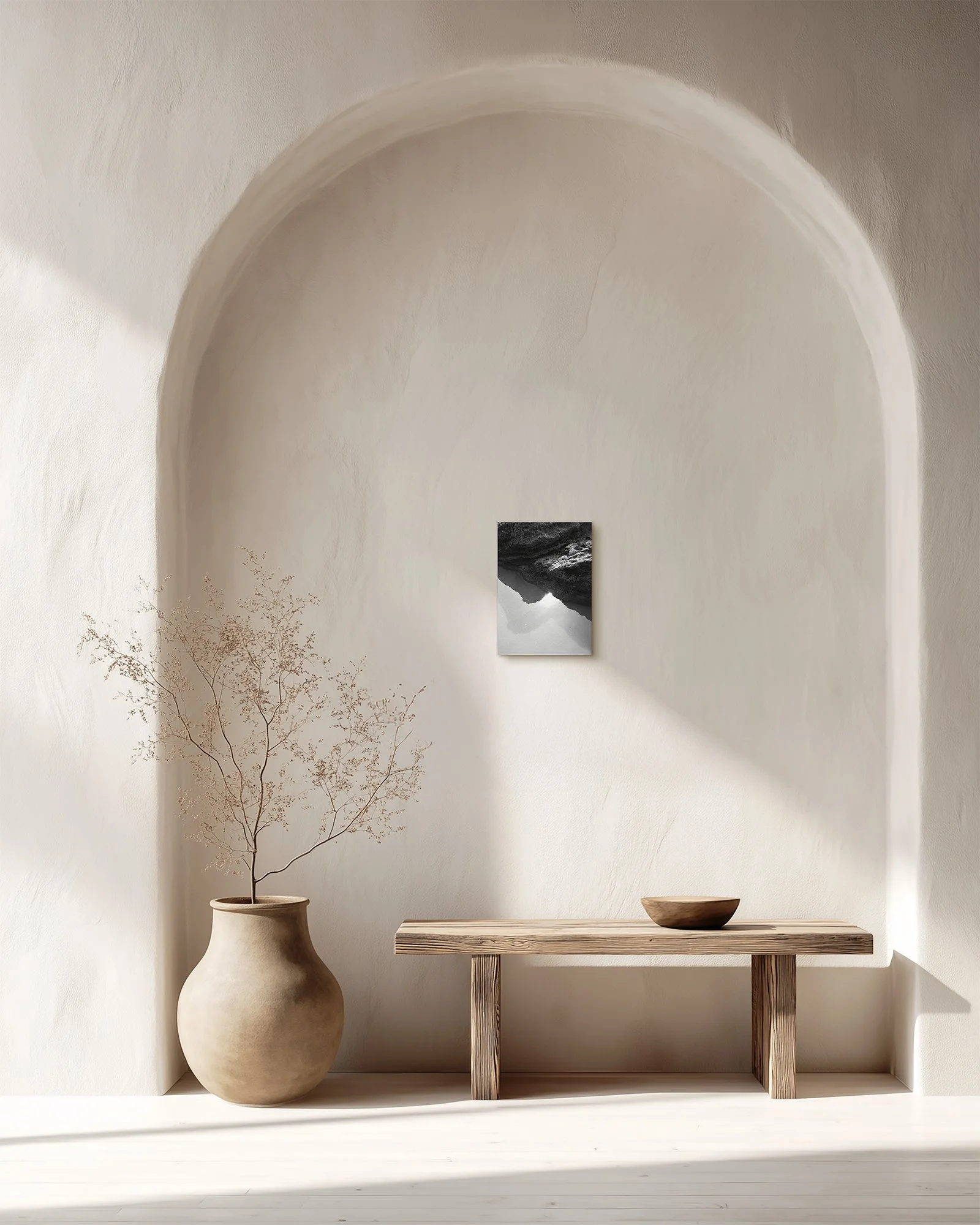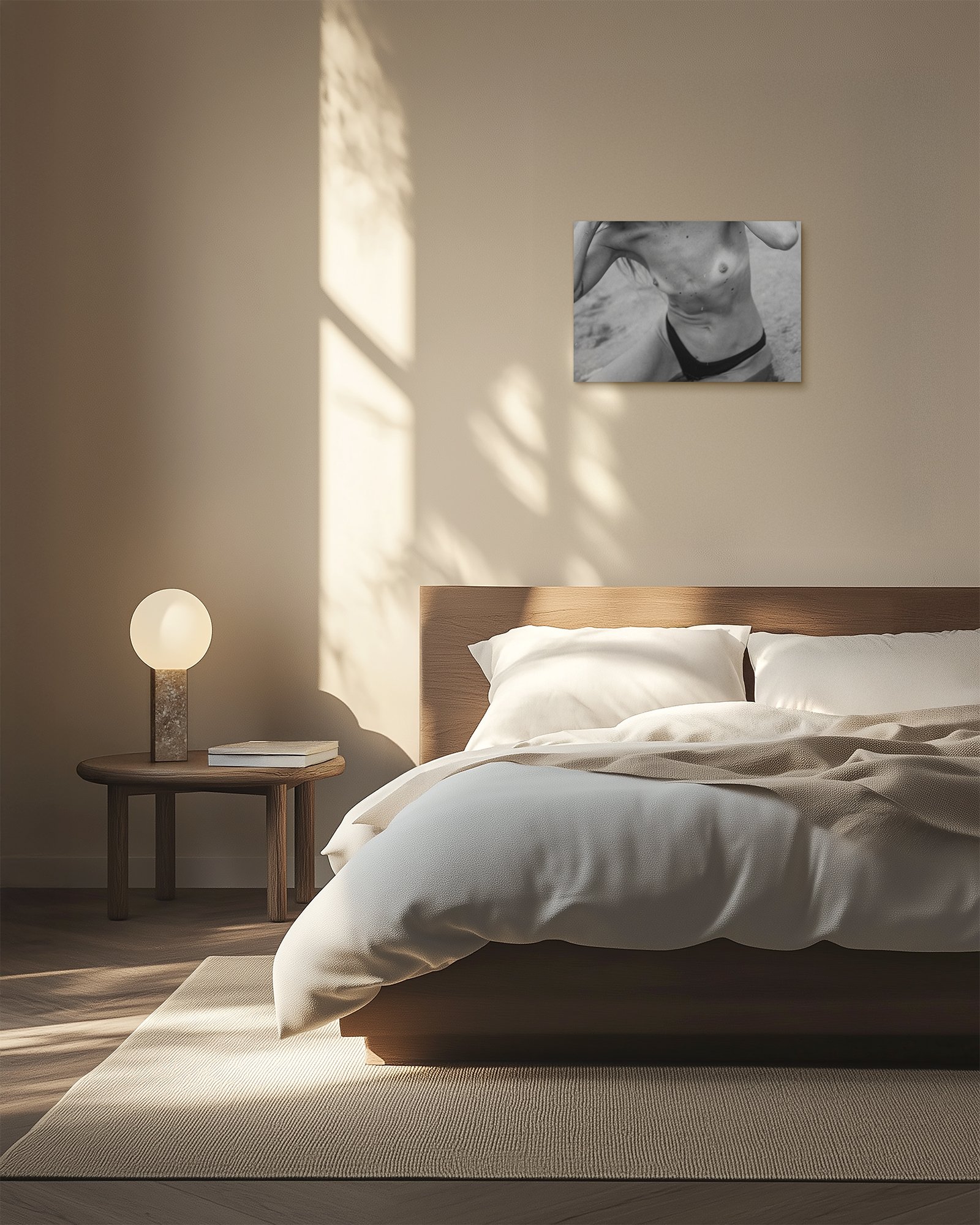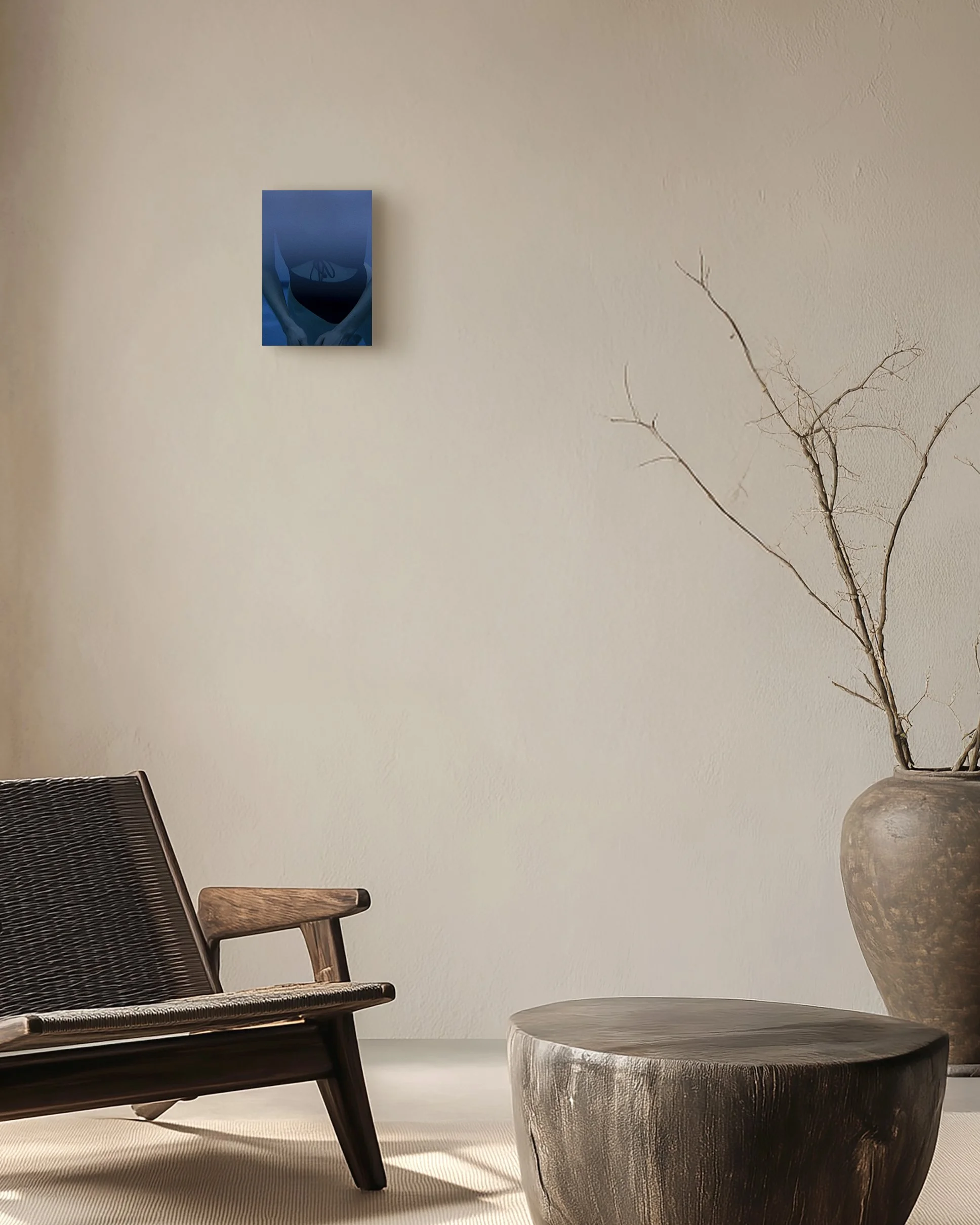 For prints of 100cm x 100cm and bigger the aluminium is replaced with 3mm dibond. Still elegant but with increased sturdiness, necessary for this size. In this case the hooks are also replaced with a hanging profile, that goes all around the back of the print.